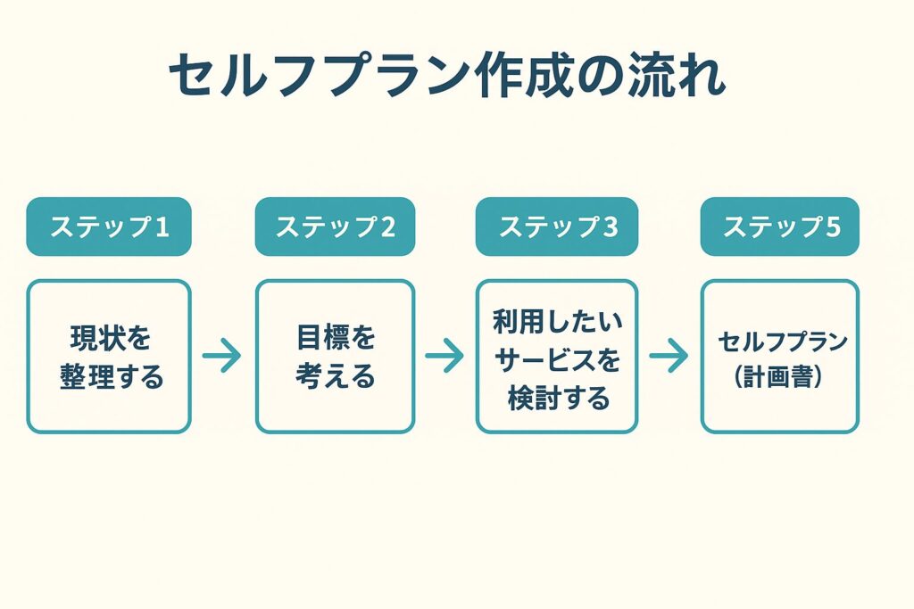 ここでは、セルフプランを作成する際の基本的な流れを5つのステップで紹介します。