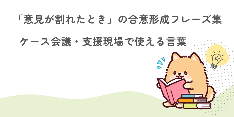 この記事では、意見が割れた場面で使える合意形成フレーズを、ケース会議・支援現場ですぐ使える形で紹介します。言葉を変えるだけで、話し合いの質は驚くほど変わります。